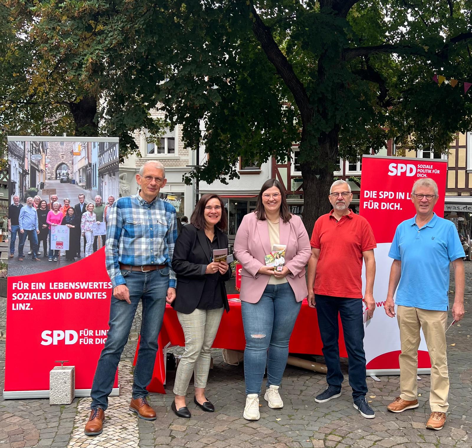 Linz. Ein lebendiges Wochenende liegt hinter der SPD Linz: Nach einem informativen Fraktionsabend am Freitag ging es am Samstag direkt weiter mit einem Infostand am Buttermarkt – und das mit prominenter Verstärkung.