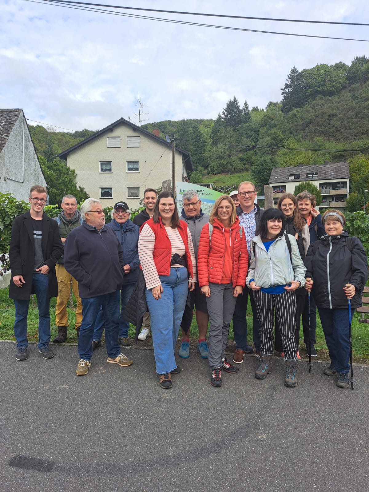 Anlässlich des 20-jährigen Jubiläums des Rheinsteigs luden die SPD-Landesvorsitzende Sabine Bätzing-Lichtenthäler und die SPD-Landtagskandidatin im Wahlkreis Linz/Rengsdorf, Marie-Christin Ockenfels, am 26.09.2025 zu einer Wanderung von Hammerstein nach Leutesdorf ein.